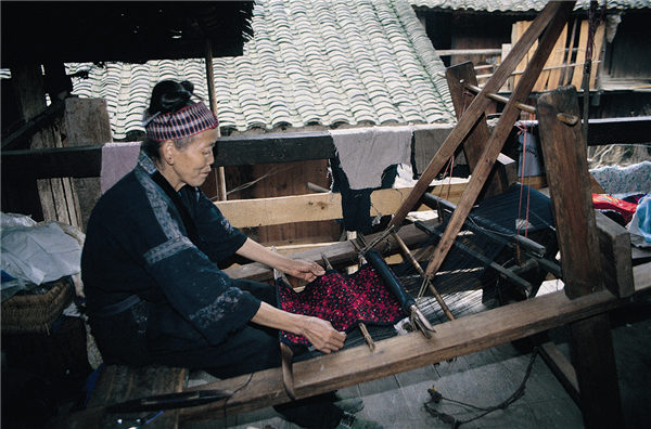 Traditional looms, once a common sight in every household, now are only used by the elderly Miao.