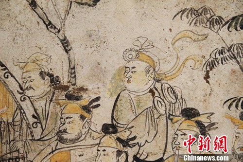 A tomb with well preserved wall paintings is discovered in Xi'an, Shaanxi province. [Photo/chinanews.com]