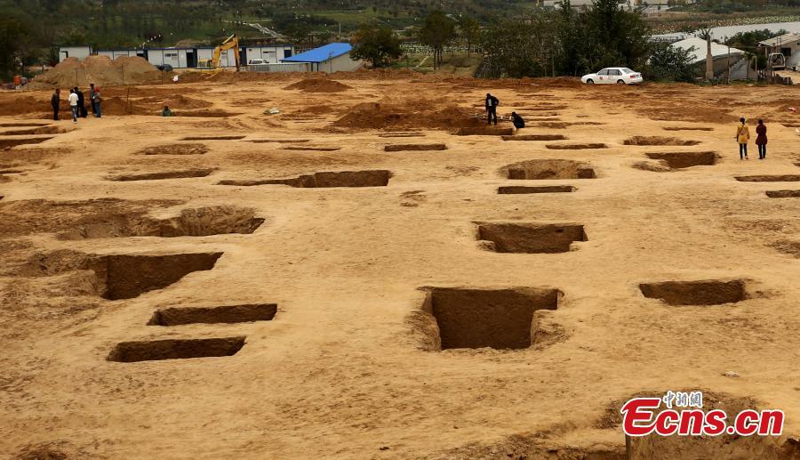 The burial pits were unearthed by archaeologists at a construction in Xinzheng, Central China's Henan province.[Photo/China News Service]