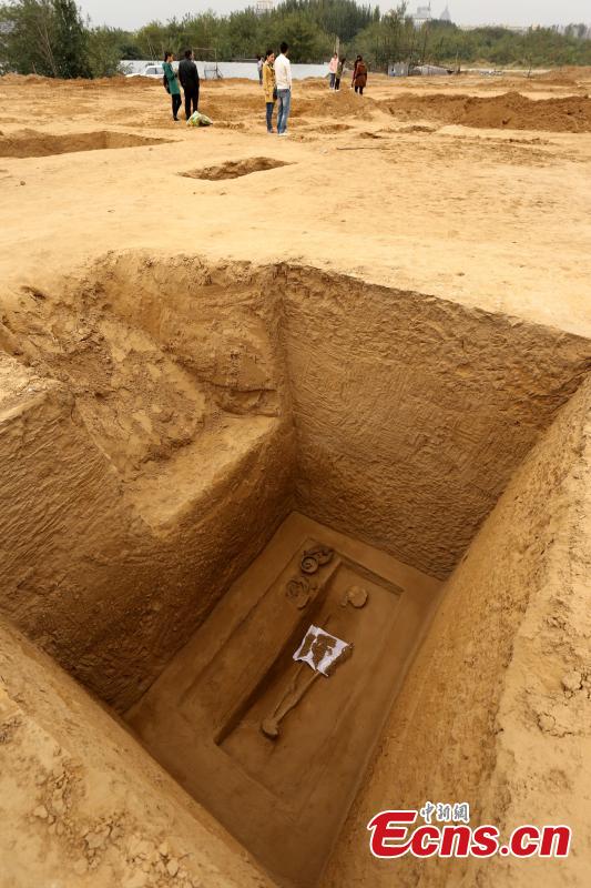 Photo shows inside of a burial pit.[Photo/China News Service]