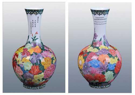 The porcelain vase is only half-meter tall, yet the flowers of over one-hundred countries are rooted and blossoming here. Behind the elaborate piece are four craftsmen ranked as national masters who spent one year to complete it especially for the 2010 Shanghai World Expo.