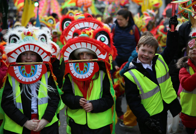 Londoners enjoyed a massive Chinese New Year party on Sunday, as the city center filled with music, acrobatics, martial arts and Chinese traditional craft stalls.