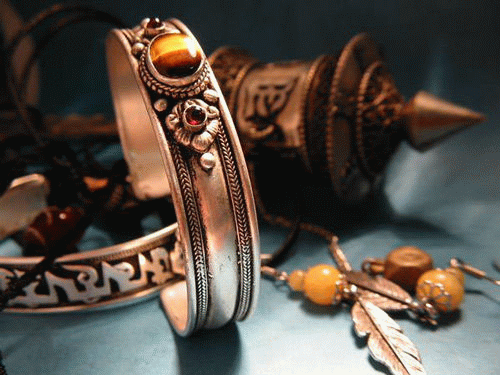 Jewelry has traditionally been an important part of Tibetan daily dress. It is believed that jewels put people in touch with deities, and protect them from the many hazards of life.