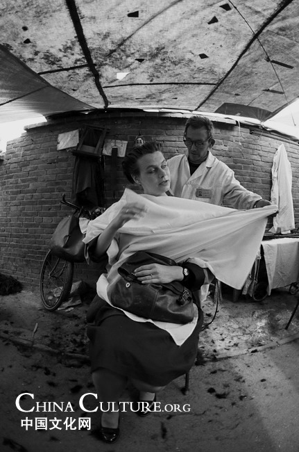 A Dutch student at Peking University prepares for a hair cut at a market in Guanyuan, Xicheng District in Beijing, in September 1988. Wang Wenquan/Peking University
