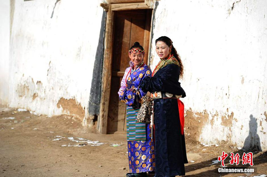 Tibetan children in Luqu county in northwest China's Gansu province put on their finest traditional clothes to greet Liangbao Festival on Feb. 13, 2014. The festival is celebrated on the 8th day of the second month in Tibetan calendar to admire nature and pray for good luck for the new year. (Chinanews/Yang Yanmin)