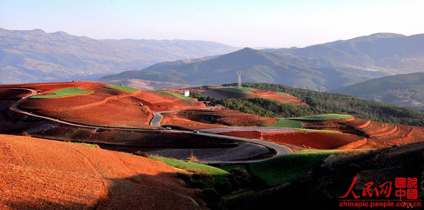 Photo shows the scenery of red terraced fields in Dongchuan District of Kunming, southwest China's Yunnan Province. (Photo/Chinapic.people.com.cn) |