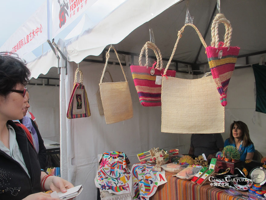 At the Chaoyang Pop Music Festival which was held May 1-3, in addition to bands and festival goers, there was also on sale Caribbean and Latin American food and crafts. From hand-made accessories to Colombian coffee, from Chilean red wine to Caribbean spices.[Photo/chinaculture.org]