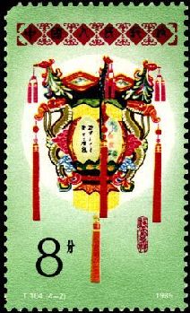 1981年2月19日,中國原郵電部率先發(fā)行T60《宮燈》特種郵票一套6枚。所謂宮燈,亦即宮廷花燈,以雍容華貴、充滿宮廷氣派而聞名于世,是中國彩燈中富有特色的手工藝品之一。由于長期為宮廷所用,除去照明外,還要配上精細復雜的裝飾,以顯示帝王的富貴和奢華。正統(tǒng)的宮燈造型為八角、六角、四角形的,各面畫屏圖案內容多為龍鳳呈祥、福壽延年、吉祥如意等。宮燈用料極為考究,大多是紅木、紫檀木、花梨木、楠木等貴重木材,甚至以昂貴的金銀裝飾。制作要求精細加工,技藝全面,雕、鏤、刻、畫缺一不可。宮燈的種類很多,主要有掛燈、座燈、提燈、壁燈等?!秾m燈》郵票表現(xiàn)的是花籃燈、龍球燈、龍鳳燈、寶盆燈、草花燈、牡丹燈,造型雍容大度,做工精美豪華。