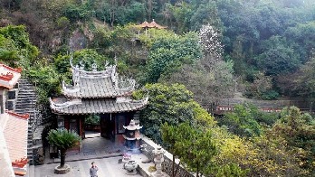 清水巖高峰,海拔767米,巖宇在500米處依山而建,背靠獅形龍脈,三峰文筆拱峙 ,面臨深壑,遠(yuǎn)處蓬萊盆山環(huán)合,登巔遠(yuǎn)眺,殿宇崔嵬,山水廳秀,風(fēng)景幽雅,常在茫 茫霧海行云之中,美如“蓬萊仙境”而蜚聲海內(nèi)處。 普足禪師時(shí)錄楊道、周明為徒,居巖十九年間“造成通泉、谷口、汰口諸橋、砌洋 中亭路,糜費(fèi)巨萬(wàn),資于施者”,又建造洋中亭,作為治病救人的義診之所。經(jīng)十八年 募捐創(chuàng)建軍,清水巖寺廊初奠,巖宇告成。建軍中靖國(guó)元年(1101)五月十三日,普足禪師圓寂,鄉(xiāng)人刻沉香木為像,供在巖寺中,奉號(hào)清水詛師。從南寧景炎二年(1277年)到近代,清水巖經(jīng)續(xù)建、重建、擴(kuò)建 、改建、重修達(dá)三十多次。巖宇依山面筑,面臨深壑,作樓閣式,分三層。第一層昊天 口,第二層祖師殿,第三層迦樓;左右翼鐘、鼓樓、檀、觀音廳、芳名廳、僧舍等分立 于東西兩邊。崇樓曲閣,層迭回護(hù),從遠(yuǎn)一看,外觀猶如“帝”字,氣勢(shì)磅礴,巍 壯 觀,相傳 有九十九間房屋,現(xiàn)存為明 清及近代建筑。 巖宇四周還有許多文物古跡,奇觀異景點(diǎn)綴其間。