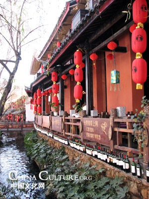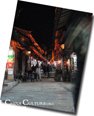 走在古城光滑的青石板路上,徜徉在純樸踏實(shí)的納西族人和行行色色的游人之間,才發(fā)現(xiàn)納西文化和納西風(fēng)情怎樣與現(xiàn)代生活水乳相容。專門刻有五彩的納西文字的墻,無論是什么樣的店鋪必帶有的納西文字招牌,充滿雕刻裝飾的土木結(jié)構(gòu)特色房屋,納西族特色的服飾,就連麗江最為著名的酒吧,也在現(xiàn)代感中透露著少數(shù)民族的多彩與古樸。