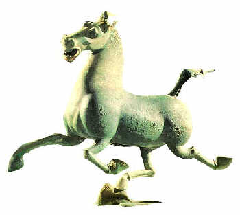 其造型多成威嚴粗獷、端莊沉穩(wěn)之態(tài),表現(xiàn)出堅實渾厚、富麗輝煌的質感。銅雕的紋飾主要為饕餮紋,或以動物頭部造型,再以鳥、獸、蟲、魚部分形體組成抽象的圖案來襯托銅雕造型。中國歷史上重要的銅雕藝術品有西周的“伯矩”鬲,晚商的“司母戊”鼎以及漢代的“馬踏飛燕”。