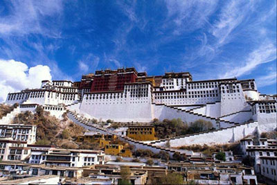 拉薩城風(fēng)景優(yōu)美,被稱為“藍色歡樂之波”的吉曲河(拉薩河),從白雪皚皚的念青唐古拉山的冰峰雪谷中奔涌而下,噴珠吐玉,雪浪飛翻,穿過無數(shù)森林峽谷,田園牧野,全長315公里,在曲水地方象鼻灣匯入雅魯藏布江,形成了藍白二水相互交融的雪域奇觀。拉薩古城就佇立在這條蔚藍色的吉祥河畔。城中布達拉宮高聳云天,街道縱橫,高樓群集,車水馬龍,色彩繽紛。古老與現(xiàn)代,傳統(tǒng)與創(chuàng)新,宗教與世俗,轉(zhuǎn)經(jīng)筒與電腦,昨天、今天和明天,都在這里碰撞、凝聚和交融。