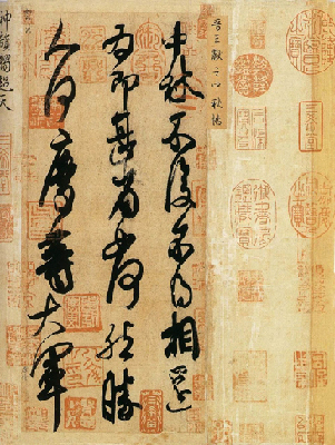 《中秋帖》草書,紙本,北京故宮博物院藏 傳為晉王獻之書手卷,縱27cm,橫11.9cm。共3行,共22字,釋文:“中秋不復(fù)不得相還為即甚省如何然勝人何慶等大軍。”無署款。