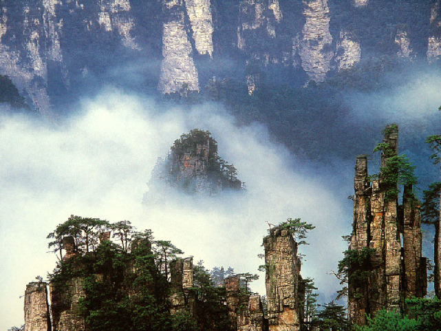 張家界市的地層復(fù)雜多樣,造化了當(dāng)?shù)氐奶厣坝^。在張家界市區(qū)境內(nèi),由于受地理、地層、構(gòu)造、氣候等諸多條件的影響,便形成了多姿多彩的地貌奇觀。從地勢上來看,張家界市西接云貴高原,東臨洞庭湖,北與鄂西山區(qū)接壤,南又與雪峰山毗連。其總的地勢是:東南與中部低,四周高,沿澧水河流兩岸,又有一塊一塊的沖積土平原。該市境內(nèi)一年四季,氣候溫和,雨量充沛,溪流發(fā)育,各條溪流的均匯集到澧水河,然后從西向東,一直流進(jìn)八百里洞庭湖。湖內(nèi),沉積著幾十米幾百米厚的泥沙。與洞庭湖相反,從東向西,地勢又逐漸升高,到市區(qū)中心地段,便出現(xiàn)了海拔高達(dá)1500余米的天門山、七星山等高山峻嶺。有高山峻嶺,又有低谷平原,這就是本區(qū)獨特的流水侵蝕地貌。