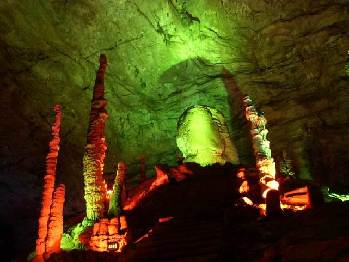 地下喀斯特溶洞、喀斯特堆積物形態(tài)。在張家界,更是堪稱一絕。其溶洞規(guī)模,桑植縣的九天洞能列入世界洞穴學(xué)會會員洞,也真不愧為亞洲地一洞的響亮稱號,可見不是一般。九天洞和位于武陵源區(qū)的黃龍洞,是張家界地下喀斯特地形的代表。它們集溶洞、溶洞河、暗河、落水洞、漏斗為一體。其洞內(nèi)喀斯特堆積物,石鐘乳、石筍、石柱更是千姿百態(tài),變化萬千,可以說,想什么,像什么,極大地拓展了游人想象的空間,往往使人很難找到恰當(dāng)?shù)脑~匯和語言來贊美她。