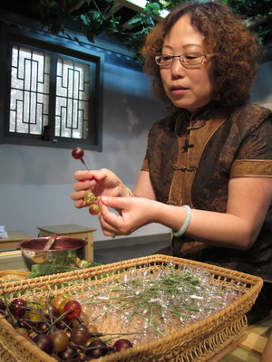 在第五個文化遺產(chǎn)日宣傳活動中,有一個展示臺前圍滿了參觀者。人們無論年齡的大小,都會對面前的作品為之驚嘆,一些年幼的孩子竟然固執(zhí)的非“吃”不可。這就是北京民間文藝家協(xié)會會員、“葡萄?!钡谖宕鷤魅顺:?、常燕姐妹二人搶救恢復(fù)的“葡萄”工藝作品。