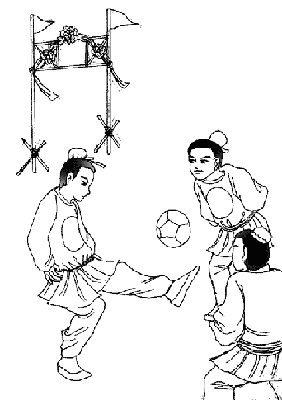 蹴鞠流傳了兩千三百多年,它起源于春秋戰(zhàn) 國時期的齊國故都臨淄,唐宋時期最為繁榮,經(jīng)常出現(xiàn)“球終日不墜”,“球不離足,足不離球,華庭觀賞,萬人瞻仰”的情景。