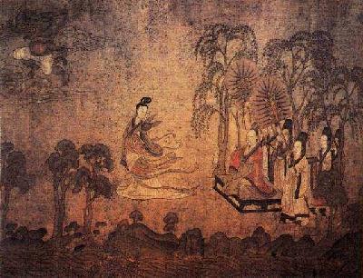 the meeting between Cao and Goddess Luoshen at Luoshui River. The picture vividly captures the