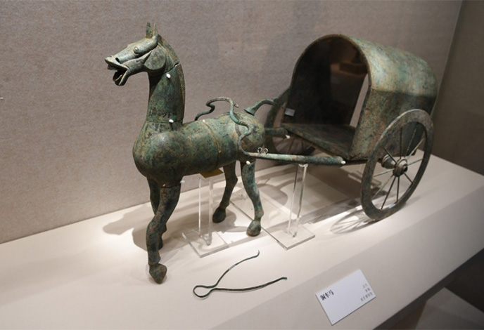 A journalist takes photos of the exhibits during a special exhibition with a selection of cultural relics dating from the Spring and Autumn Period (770-476 BC) to the Qin and Han Dynasty (221 BC-220 AD) at the Nanjing Museum in Nanjing, East China's Jiangsu province, May 17, 2020. The special exhibi