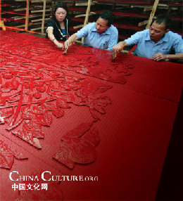 Lacquer carving, is one of the famous fine arts of the southern province Fujian. The sap of lacquer trees is mixed with brick powder and spun into hair-like threads, which are then used to shape various patterns, such as dragons and phoenixes. This kind of art involves 27 procedures and has taken local craftsmen more than 10 generations to master and perfect.