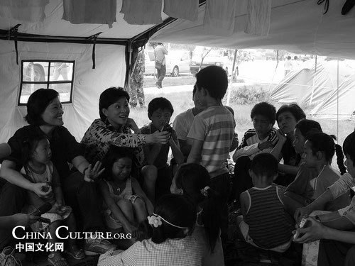 We "Mother Love in Action" group arrived in Mianzhu on Saturday, one of the hardest-hit areas in Sichuan. I and the vice president of the All-China Women's Federation, Mo Wenxiu, and other psychological experts visited some of the affected children and pregnant women in Mianzhu.