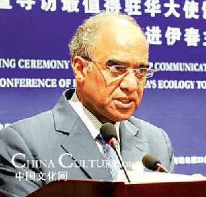 Kuwaiti ambassador to China Faisal Rashed Al-Ghais delivers a speech.