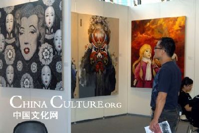A visitor watches exhibits during the ongoing 13th Shanghai Art Fair, which opens at the Shanghai Mart, in Shanghai, east China, Sept. 9, 2009. Over 120 collection organizations from China and overseas, among them 96 from China, bring upon modern and contemporary artistic works in the categories of traditional Chinese paintings, oil paintings, block print, sculpture, porcelain and pottery, and etc. to participate in this rendezvous nicknamed as the vane of Asian art collections.