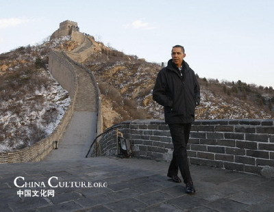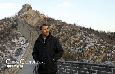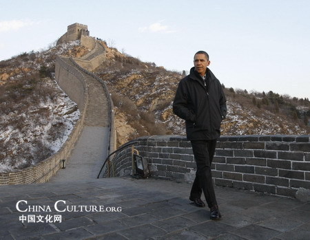 US President Barack Obama tours the Great Wall of China at Badaling on the outskirts of Beijing, November 18, 2009.