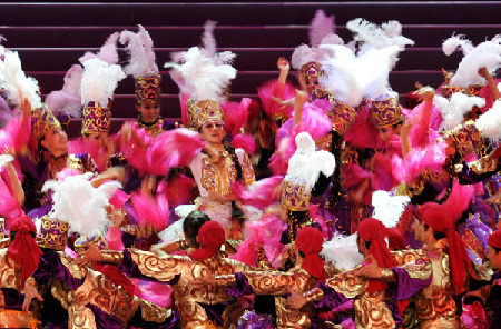 Dancers perform at the opening ceremony of the second China Xinjiang International Folk Dance Festival in Urumqi of Xinjiang Uyghur Autonomous Region on July 20, 2011. The festival will continue until August 5. [Photo/Xinhua]