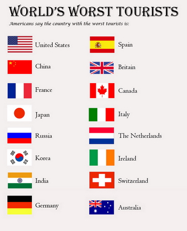 A survey by LivingSocial, conducted among more than 5,600 respondents in five countries by Mandala Research, discovered that Americans are widely considered the world’s worst tourists, closely followed by China, a new economic power on the world scene.