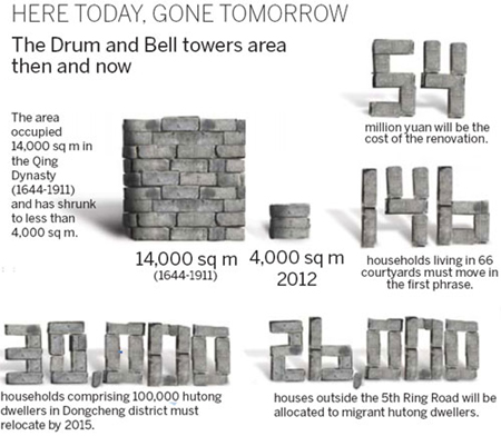 Editor's note: Fierce controversy has built up around the planned demolition and renovation of the area surrounding Beijing's Drum and Bell towers. Some residents, especially those living in poor conditions, can't wait to be relocated. Others say they will resist. The complexities surround concerns about the remoteness of resettlement locations, compensation and the disintegration of longstanding communities. This special report examines the various dimensions of the demolition and renovation.