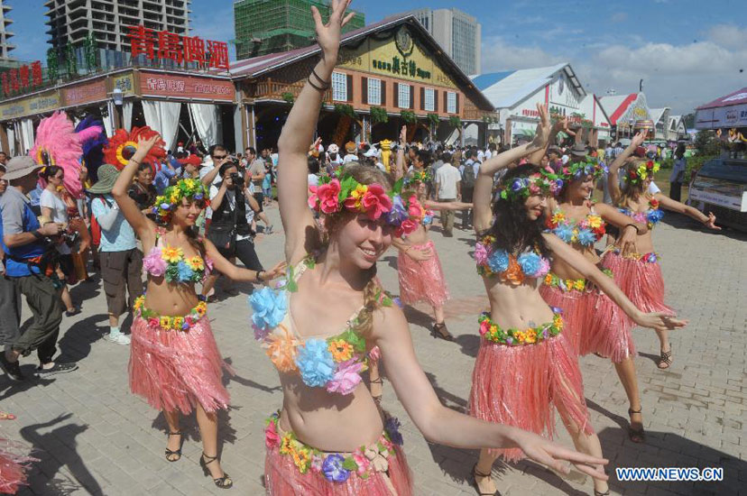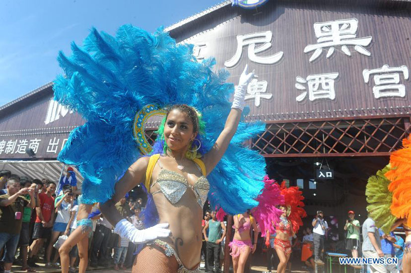 A Brazilian girl gives performance after the opening ceremony of the 22nd Qingdao International Beer Festival in Qingdao, a coastal city in east China's Shandong Province, Aug. 11, 2012. More than 300 varieties of beer of 25 brands from 16 countries and regions will be offered during the beer festival, which will last till Aug. 26. (Xinhua/Li Ziheng)