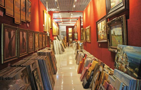 An exhibition hall at Xiamen Union Arts Co Ltd, an oil painting producer in Xiamen, Fujian province. Xiamen is one of the biggest places that massively produce oil paintings in China. [Photo/China Daily]