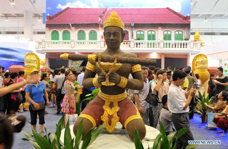 Visitors tour the Cambodia Pavilion at the ninth China-ASEAN Expo in Nanning, capital of south China's Guangxi Zhuang Autonomous Region, Sept. 25, 2012. The ninth China-ASEAN Expo was open to the public on Tuesday. (Xinhua/Zhou Hua)