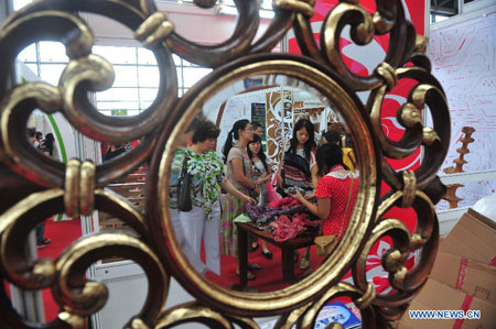 Visitors shop for Indonesian goods at the ninth China-ASEAN Expo in Nanning, capital of south China's Guangxi Zhuang Autonomous Region, Sept. 25, 2012. The ninth China-ASEAN Expo was open to the public on Tuesday. (Xinhua/Huang Xiaobang)