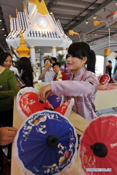 Visitors shop for Indonesian goods at the ninth China-ASEAN Expo in Nanning, capital of south China's Guangxi Zhuang Autonomous Region, Sept. 25, 2012. The ninth China-ASEAN Expo was open to the public on Tuesday. (Xinhua/Huang Xiaobang)