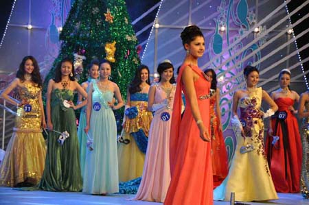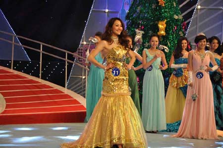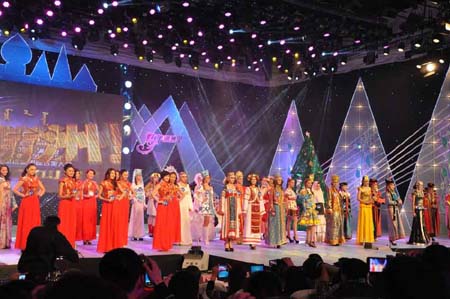 Contestants compete at the 9th China, Russia and Mongolia International Beauty Pageant which is held in Manzhouli, Hulun Buir city in north China's Inner Mongolia Autonomous Region on the evening of Dec. 24, 2102.