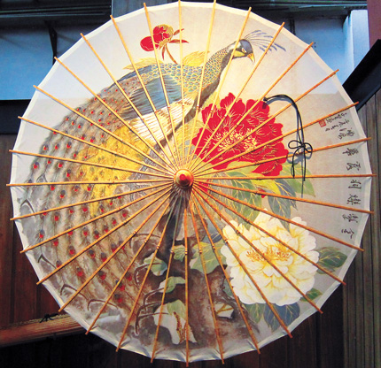The original silk parasols were only for shade and decoration and they were not water-proof. "Umbrellas in supermarkets and other stores are fashionable, compact and easy to carry, so silk parasols lost popularity in the market," Zhang says.