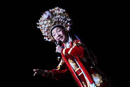 A young artist performs Yuju Opera during a show by China's "Cultures of China, Festival of Spring" art group in Paris, capital of France, Feb. 16, 2013.