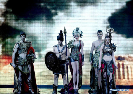 Models present creations during the MGPIN Collection at the China Fashion Week in Beijing, capital of China, March 27, 2013.