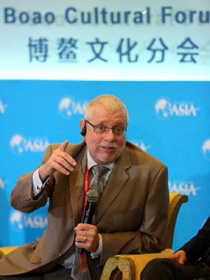Andrew Morgan, president of Ruddy Morgan Organization, speaks during the session of "Boao Cultural Forum" at the Boao Forum for Asia (BFA) Annual Conference 2013 in Boao, south China's Hainan Province, April 8, 2013. (Xinhua/Xu Zijian)