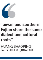 "Taiwan and southern Fujian share the same dialect and cultural roots," said Huang Shaoping, Party chief of Quanzhou.