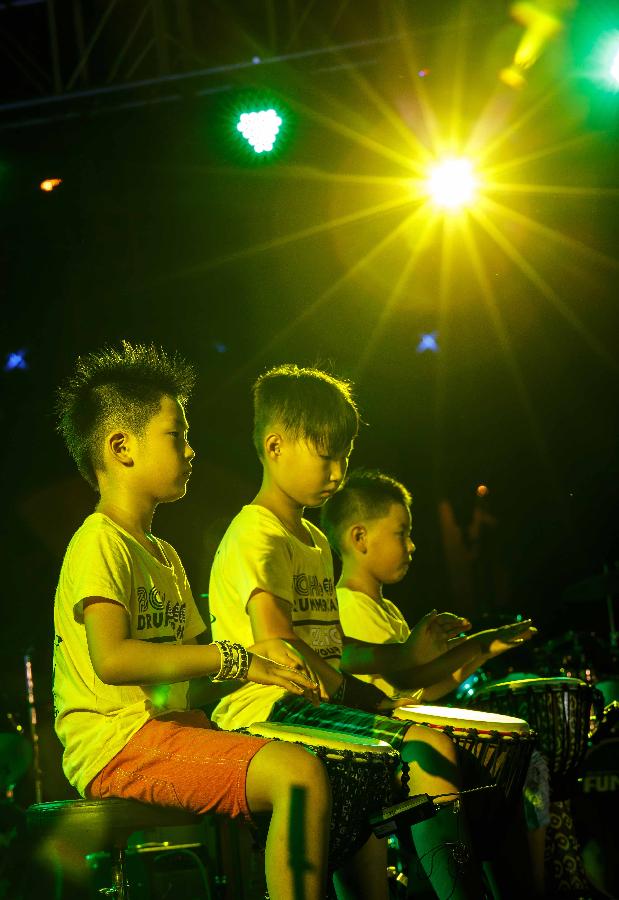 Children perform during the "BOX" children rock festival in Nantong, east China's Jiangsu province, Aug. 16, 2013. The two-day festival kicked off in Nantong on August 16. [Xinhua/Huang Zhe]