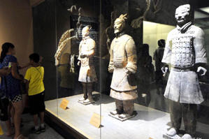 File photo of two bronze sculptures depicting the heads of a rat and rabbit on display at the National Museum of China. The two heads were returned to China in June after having been stolen by European forces during the Qing Dynasty (AD 164-1911). [Photo provided to China Daily]