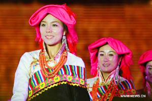 Tibetan ethnic costumes presented at festival  Models showcase elegance at wedding expo in Nanjing