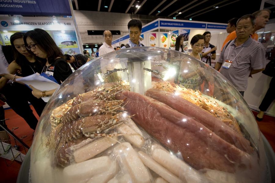 People visit the "Asian Seafood Exposition" in Hong Kong, south China, Sept. 3, 2013. The three-day seafood fair kicked off here Tuesday, attracting some 165 participants from 25 countries and regions. (Xinhua/Lui Siu Wai)