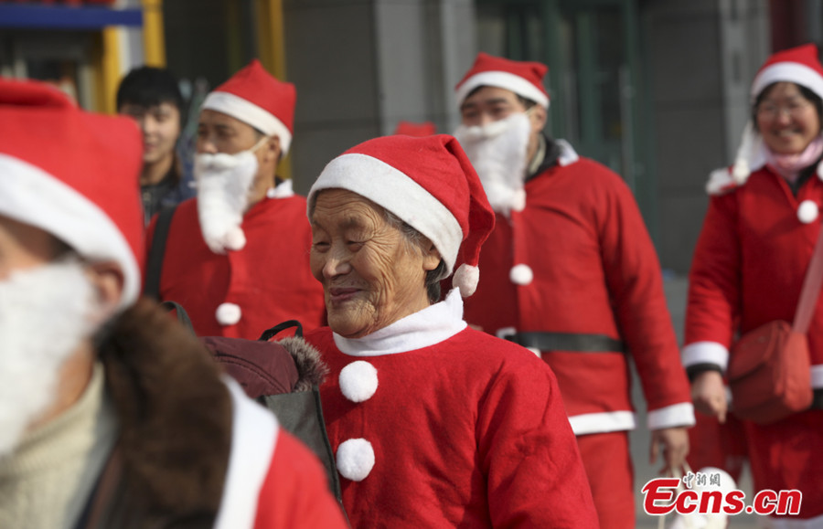 People take part in a parade to mark the upcoming Christmas Day in Jinan, capital city of east China's Shandong province on December 22, 2013. [Photo: China News Service / Zhang Yong]