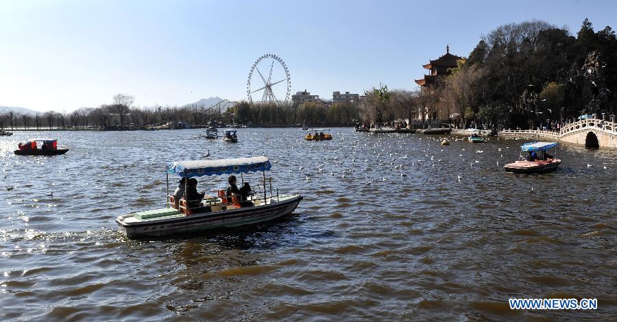 Tourists visit the Daguan Park in Kunming, capital of southwest China's Yunnan province, Jan. 5, 2014. Kunming is know as the "spring city" for its mild weather throughout the year. (Xinhua/Lin Yiguang)