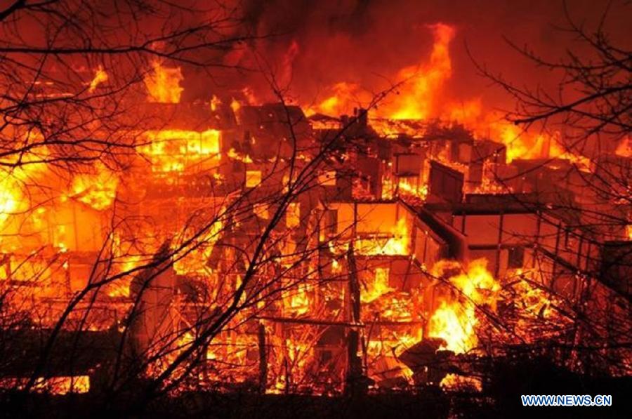 The fire broke out around 1:30 a.m. at the Dukezong Ancient Town, where most houses are made of wood, adding difficulties to the fire fighting, said a local government spokesman.