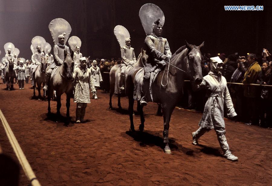 French artists perform during the "Nuit de Chine"(Night of China) grand soiree held in Paris, France, Jan. 27, 2014. The "Nuit de Chine" grand soiree marking the 50th anniversary of diplomatic relations between France and China was held at the Grand Palais in Paris. (Xinhua/Chen Xiaowei)